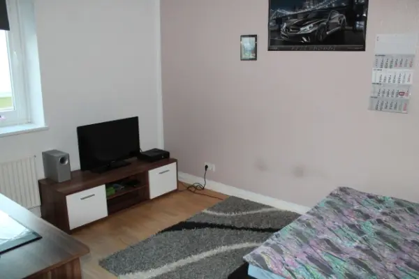 The apartment features a cozy bedroom with a double bed and two additional sleeping sofas, making it flexible for small teams or business travelers. A fully equipped kitchen and a modern bathroom provide everything needed for a convenient and relaxing stay.
